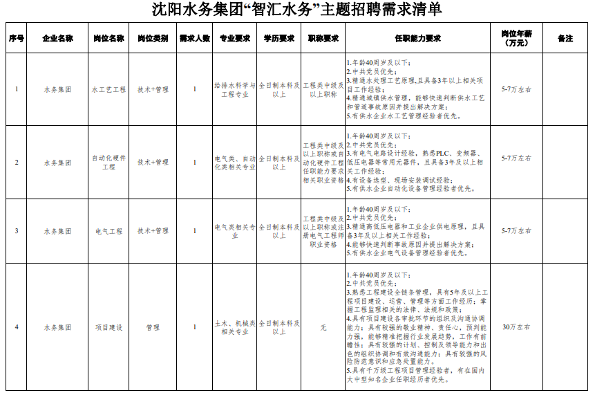 本公告内容最终解释权归沈阳水务集团有限公司所有。附件:集团“智汇水务”主题招聘需求清单.pdf