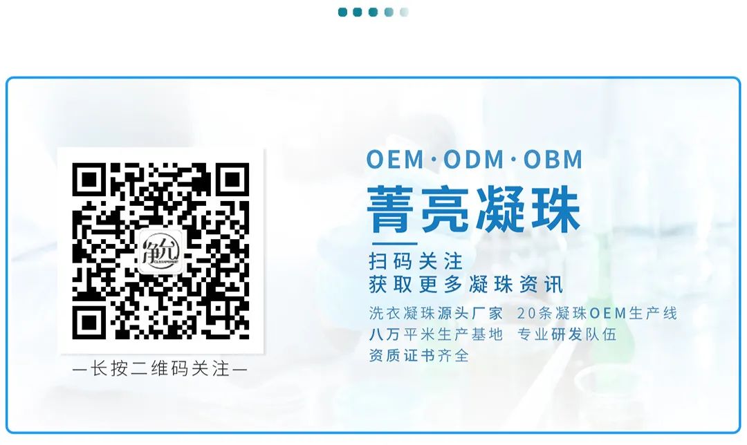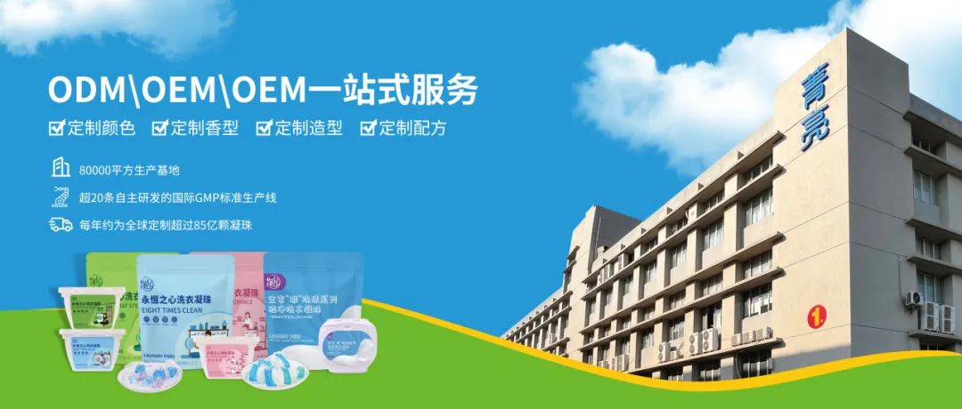 菁亮日化专注于研发洗衣凝珠及周边产品,深耕日化产品细分应用场景;具有三大优势:更新、更快、更全,持续为客户提供品牌化一站式OEM&ODM服务,用于满足消费者在日常织物护理、家居洗涤等领域对绿色化、浓缩化、功能化等个性需求的满足,引领中国绿色浓缩洗涤的全新生活方式。