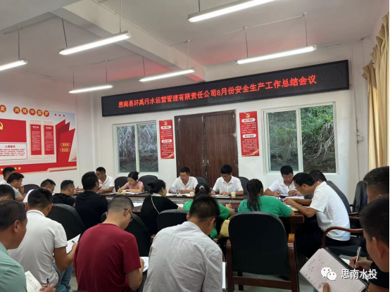 9月1日,县环禹公司组织召开8月份安全生产工作总结会、9月份安全生产暨环保工作部署会,会上对厂区运行管理、生态环保督察迎检、道路交通安全等工作进行部署。