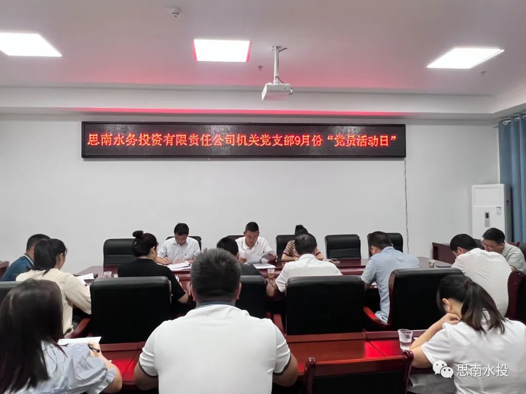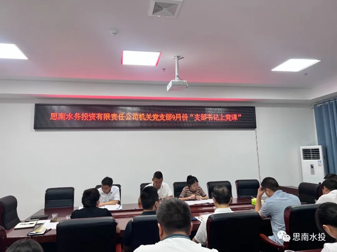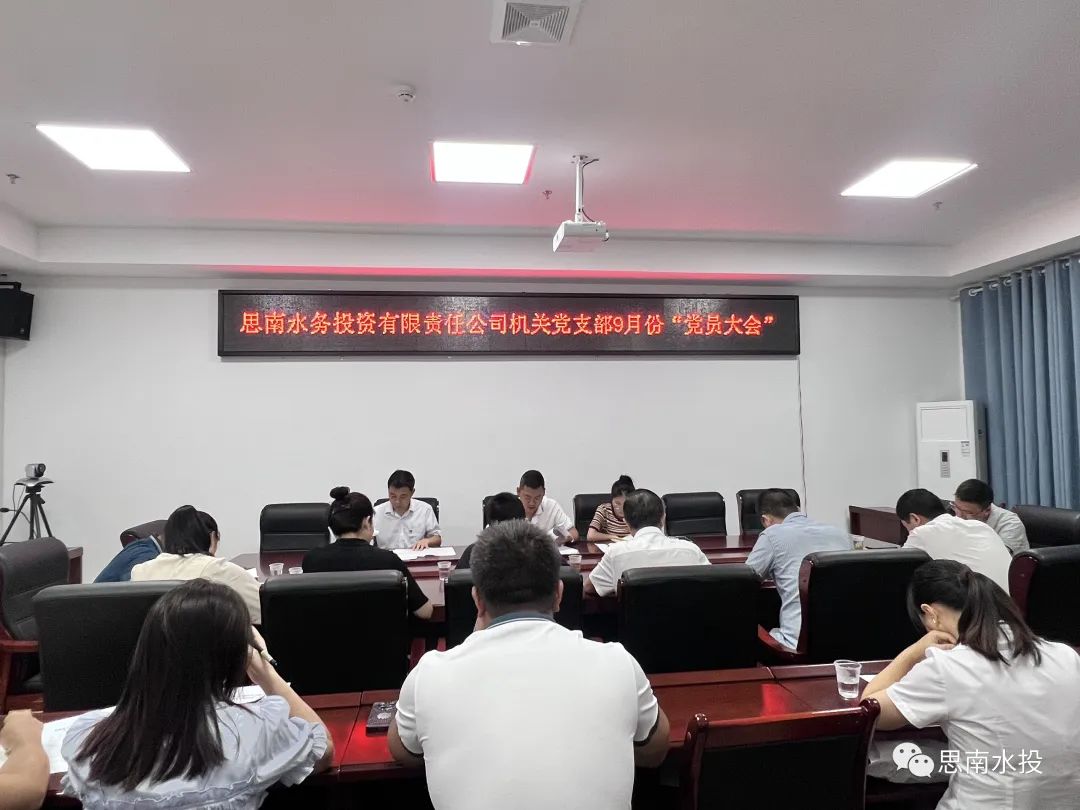 9月1日,水投公司机关支部书记朱志勇组织召开思南水务投资有限责任公司机关党支部9月份“党员大会”、9月份“党员活动日”及“支部书记上党课”,机关支部党员、积极分子参加会议。