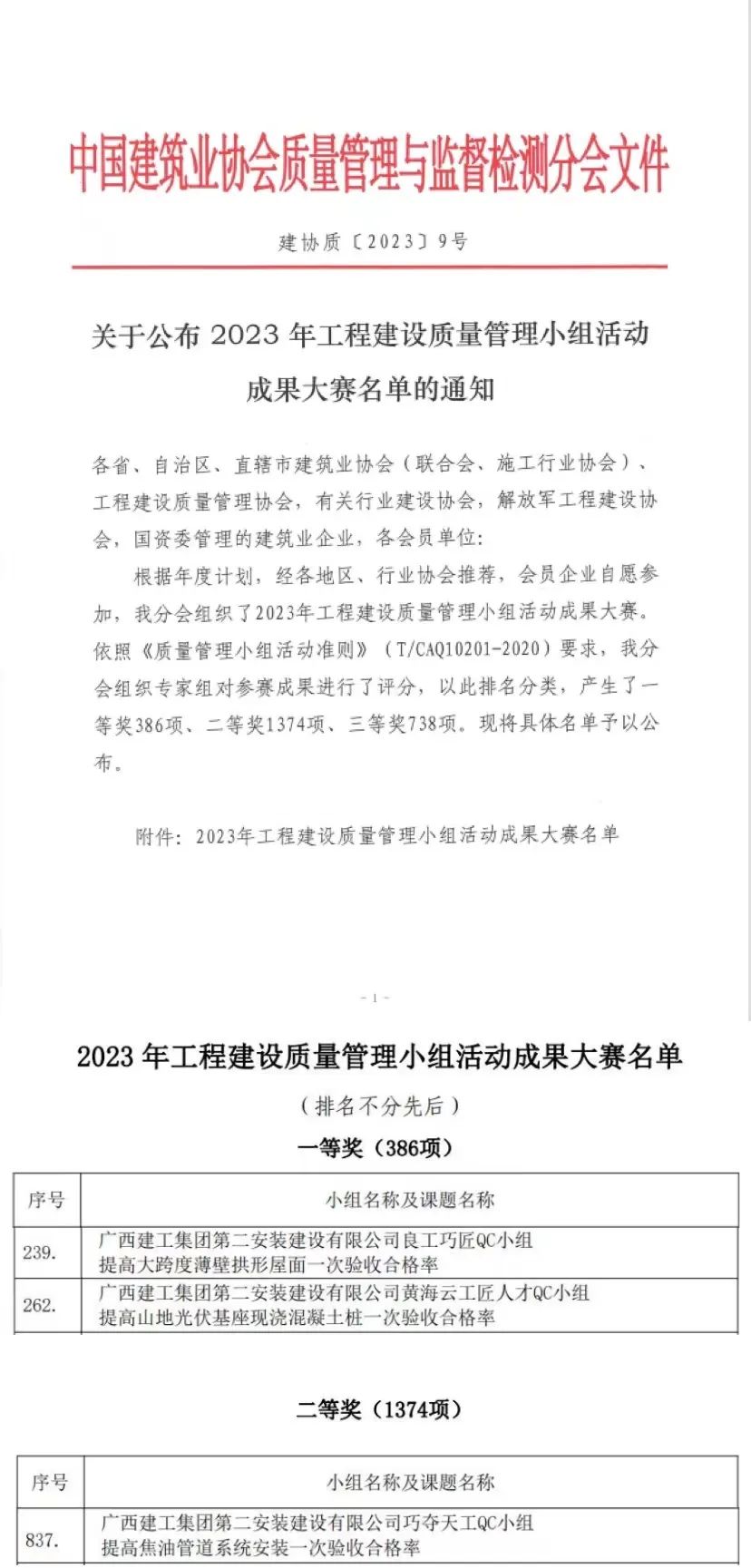 近日,从中国建筑业协会传来喜讯,公司申报的3项QC小组活动成果在2023年工程建设质量管理小组活动成果大赛中取得佳绩,获评一等奖2项,二等奖1项。