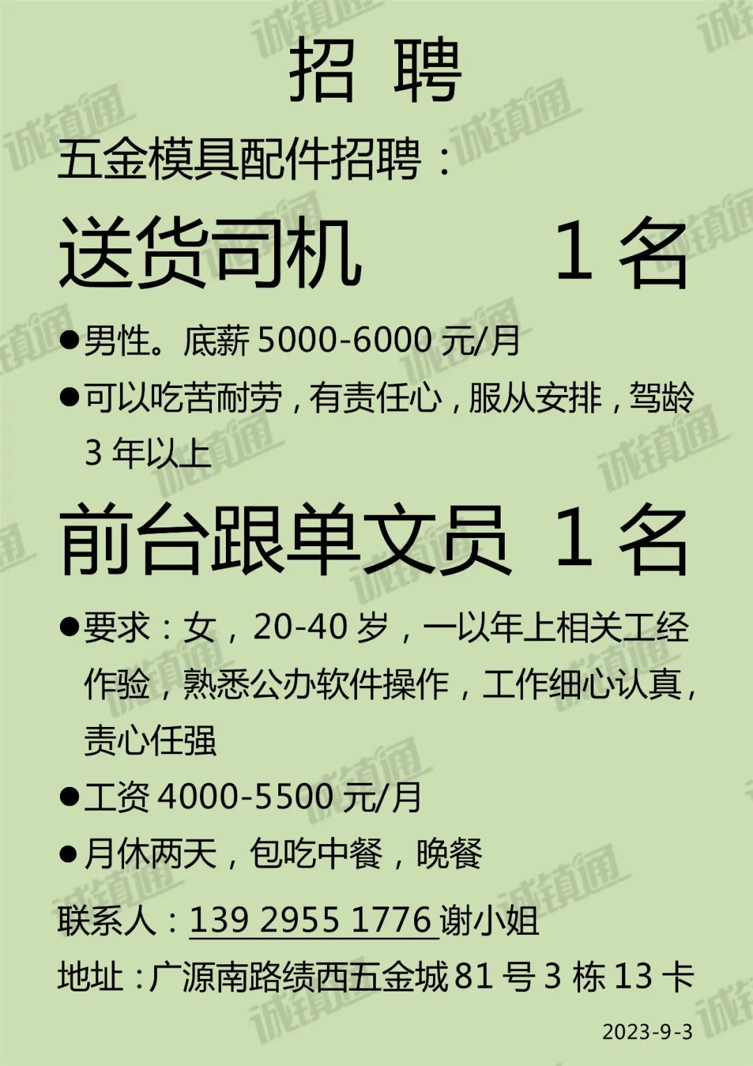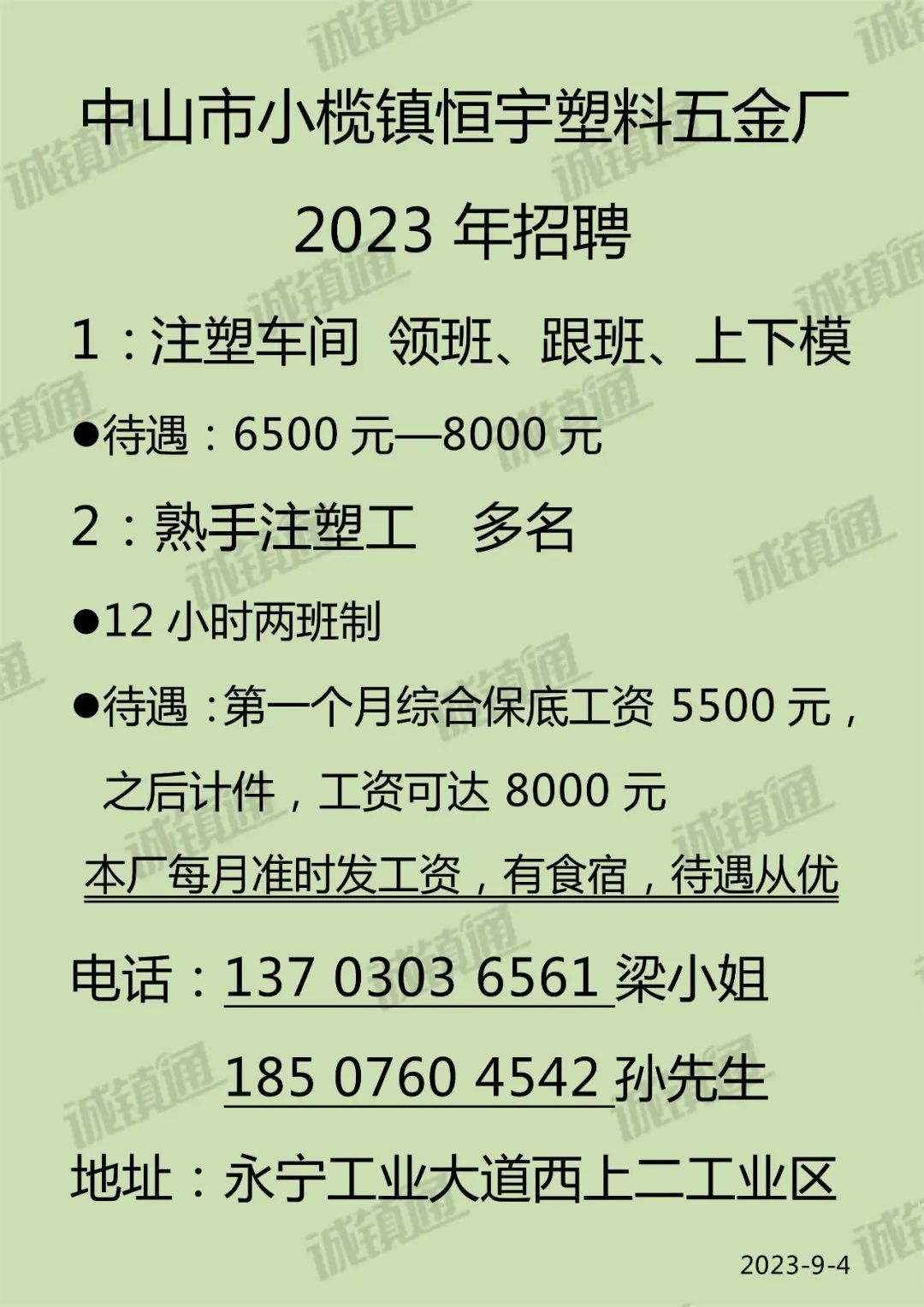 9月4日【工厂企业】招聘信息
