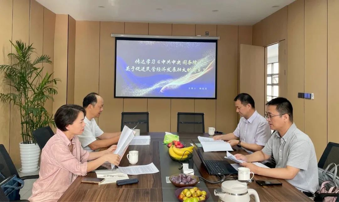 会上,党支部书记兼轮值会长林昊嵩传达学习了《中共中央 国务院 关于促进民营经济发展壮大的意见》文件精神,大家认为《意见》的一系列措施,方向精准,举措务实,为民营企业升级上档、实现高质量发展、履行好社会责任注入动力,我们要坚定发展信心,做好企业,做强产业,主动承担社会责任。