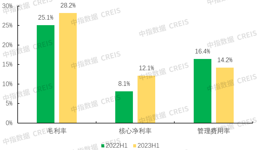 图:2022H1-2023H1第一服务控股物业服务毛利率、核心净利率与管理费用率变化情况