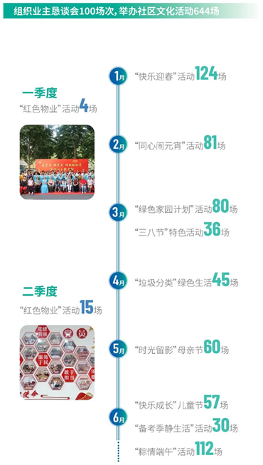 2023年上半年,第一服务控股陆续开展了红色物业共建、设立党支部19个,打造参观动线101个,打造样板项目18个,组织业主恳谈会100场次,举办社区文化活动644场,补种苗木超过100,000平方米。凭借着优质的服务水平,第一服务控股在2023年中国物业企业百强评选中名列中国物业百强TOP19。