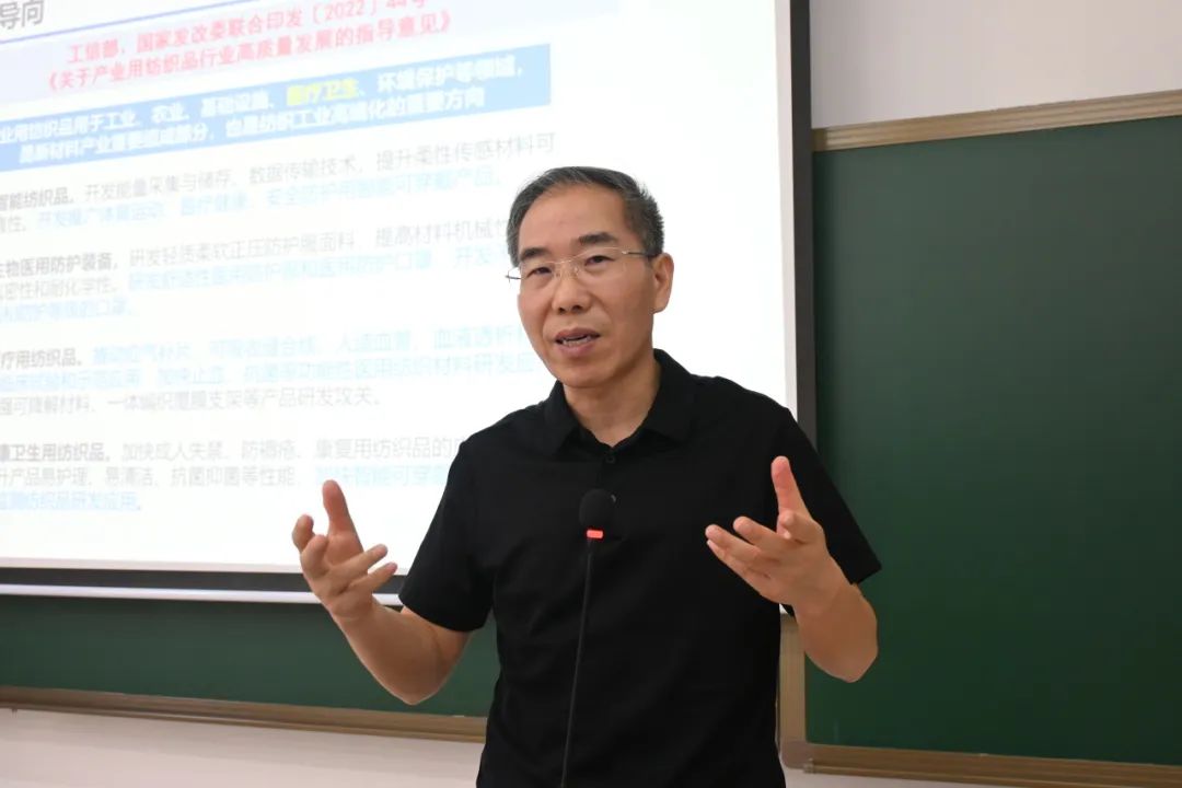 中国工程院院士、武汉纺织大学校长徐卫林带来“面向健康需求的纺织创新方向与实践”主题课程。他表示,纺织行业面向世界科技前沿,不断向科学技术广度和深度进军;面向国家重大需求,努力破解战略难题,提供战略支撑力量;面向经济主战场,集全产业链最新优质创新成果,开拓内需市场;面向人民生命健康,强化关键技术支撑,提升企业创新能力,推动科技体制改革,优化科技创新布局,完善创新生态系统。