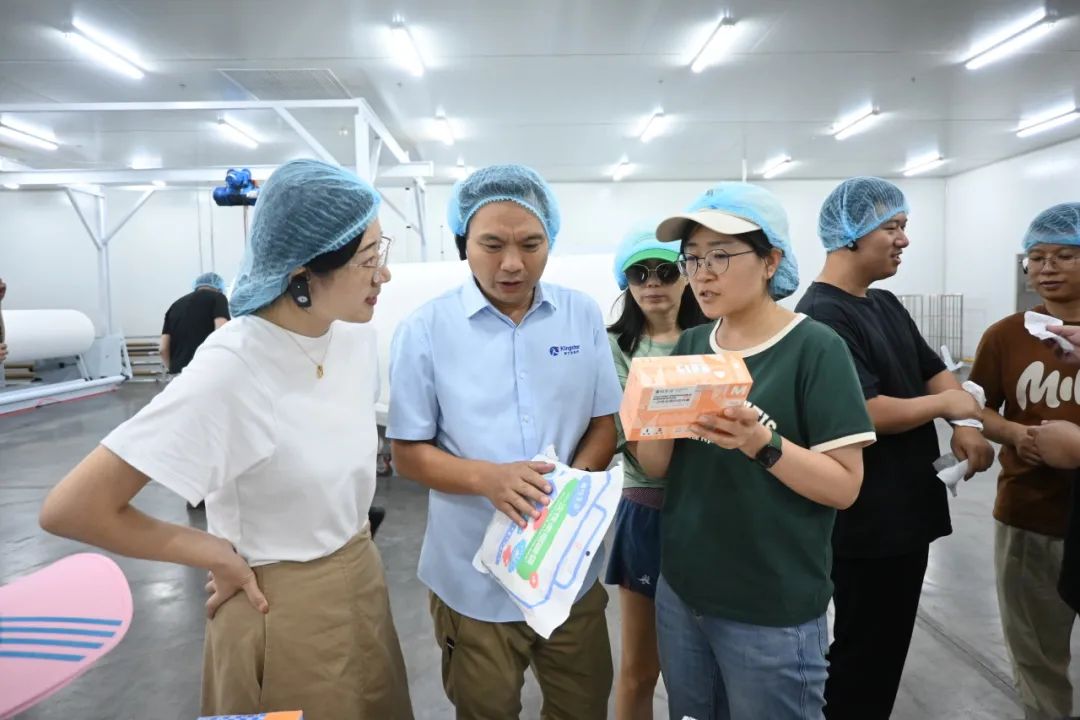 金士达医疗副总经理于成前介绍了企业的生产设备及产品品类,并带领学员们参观了企业的非织造布生产线。他表示,金士达医疗已建立起武汉、咸宁两大核心生产研发基地,拥有数十条行业领先的自动化与智能化生产线,并获得医疗器械生产许可证及经营许可证、消毒产品生产企业卫生许可证、欧盟ISO CE认证、美国FDA注册证、ISO13485医疗器械质量管理体系认证等权威专业资质。