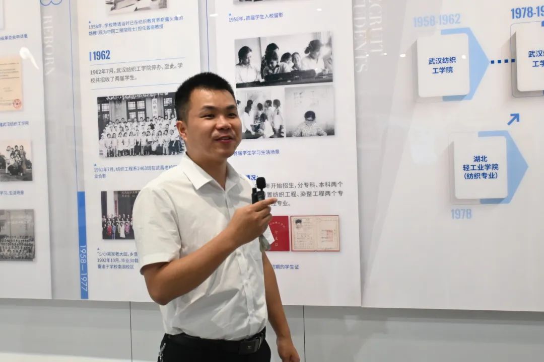 从民生日用到尖端探索,从纤维材料到光电信息,纺织应用领域极大延伸拓展,探月问天,亮剑闯关。在武汉纺织大学纺织新材料与先进加工技术国家重点实验室研究员潘恒的带领下,学员们参观了学校的纺织科技馆。