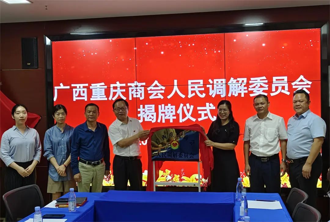 为进一步促进“两个健康”,提升辖区商会法律服务水平,8月31日,广西重庆商会人民调解委员会揭牌仪式在广西重庆商会举行,江南区司法局、江南区工商联、江南区工商联法律服务中心领导和民营企业加代表共20余人参加揭牌仪式。