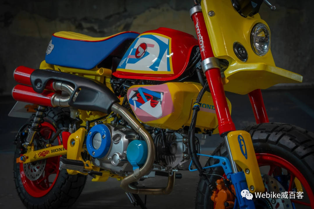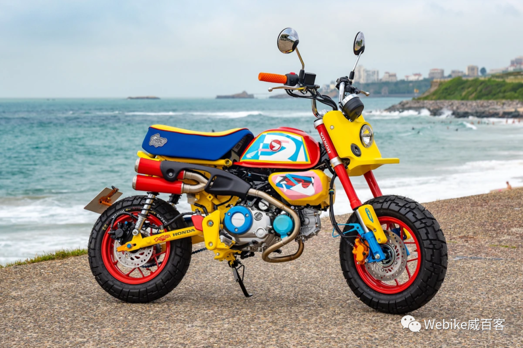 这辆名为「Tokyo」的Monkey是法国艺术家GREMS和技师George Woodman合作的项目。在保留Monkey基本轮廓的同时,他们大胆改造了其中的经典元素。将大灯改造成扁平的Tracker风格,并呈现出不对称的造型,完美地融入了后挡泥板的设计。而后挡泥板也经过巧妙修改,尾灯巧妙地嵌入其中。此外整个车身经过原色涂装处理,营造出像是用乐高积木打造的玩具一般的奇幻氛围。