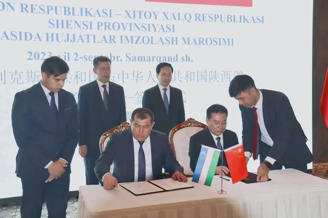 在赵一德和图尔济莫夫的见证下,陕建控股集团与乌兹别克斯坦撒马尔罕州签署了撒马尔罕卫星城项目合作谅解备忘录,陕建控股总经理毛继东与撒马尔罕州第一副州长阿比洛夫代表双方签约。