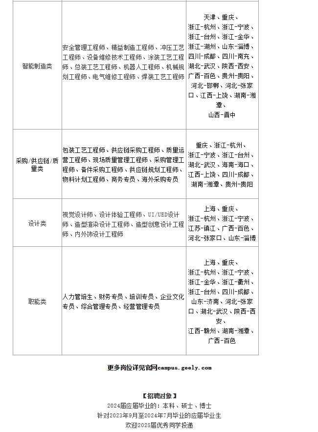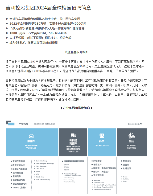 【招聘公告】吉利控股集团2024届全球校园招聘