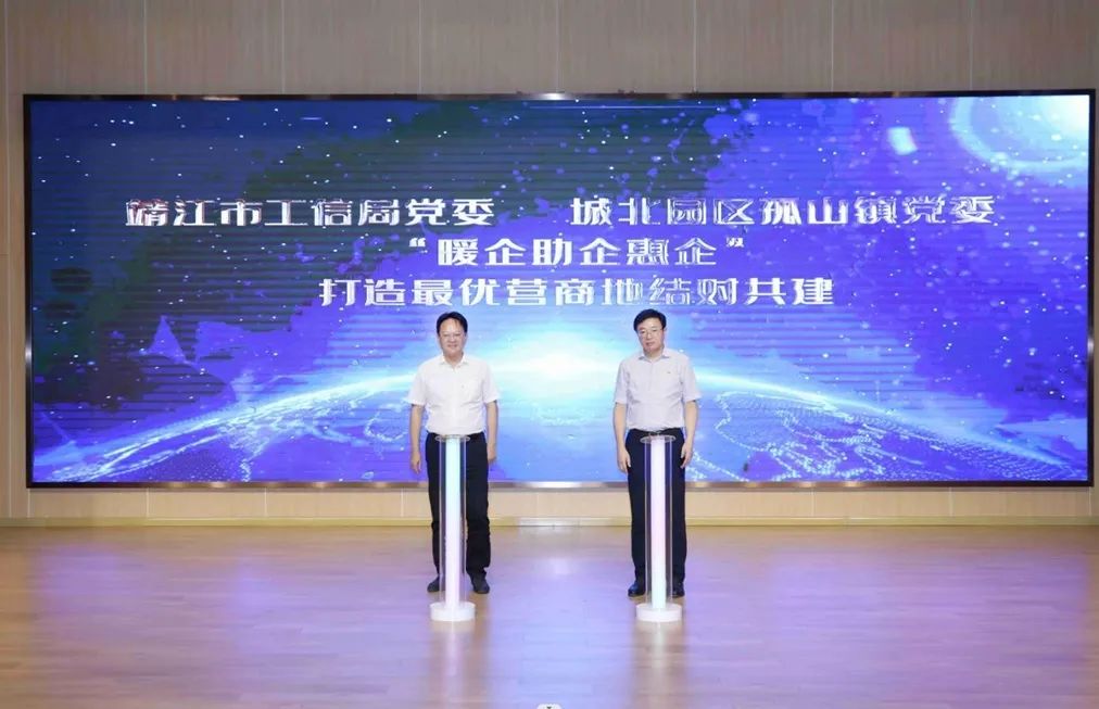活动当天,市工信局与城北园区孤山镇结对共建“暖企助企惠企”最优营商地,靖江市暖通空调产业联盟党委、团工委,城北园区、孤山镇纺织、食品、汽配、电机4个产业党建联盟同时揭牌成立,并进行了授旗。靖江团市委书记蒋永龙、希达空调净化设备有限公司总经理顾江锋,为靖江市暖通空调产业联盟团工委成立揭牌。这既是靖江市深化产业链“党建+团建”的务实举措,也是“党建+团建”助力特色产业发展的创新探索。