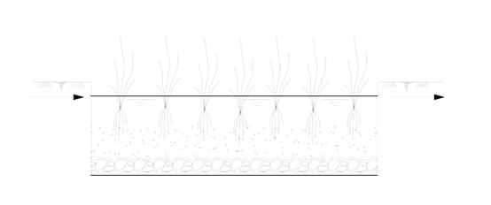 人工湿地按水流特征,可分为表面流人工湿地、水平潜流人工湿地、垂直潜流人工湿地。表面流人工湿地建造费用较低,但占地面积较大。潜流和垂直流人工湿地面积负荷大,充分利用了湿地的空间,占地面积少,且卫生条件好,但建设费用较高。