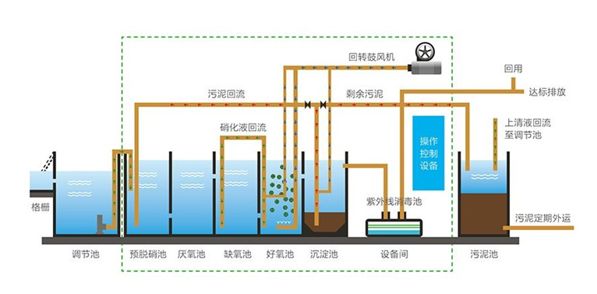 3)采用延时曝气法运行,污泥产率低,剩余污泥量少。