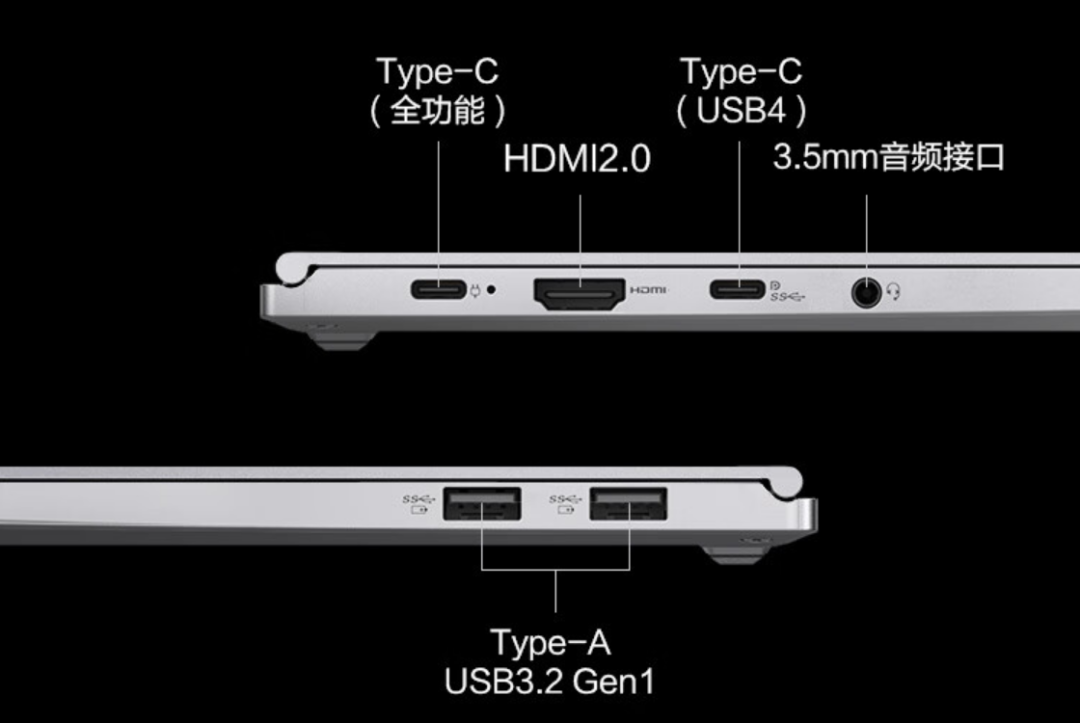 接口方面,无界 14 Pro 配备一个全功能 USB-C(支持PD3.0快充)、一个 USB4、一个 HDMI 2.0、两个 USB-A 3.2Gen1 和一个 3.5mm 音频接口。