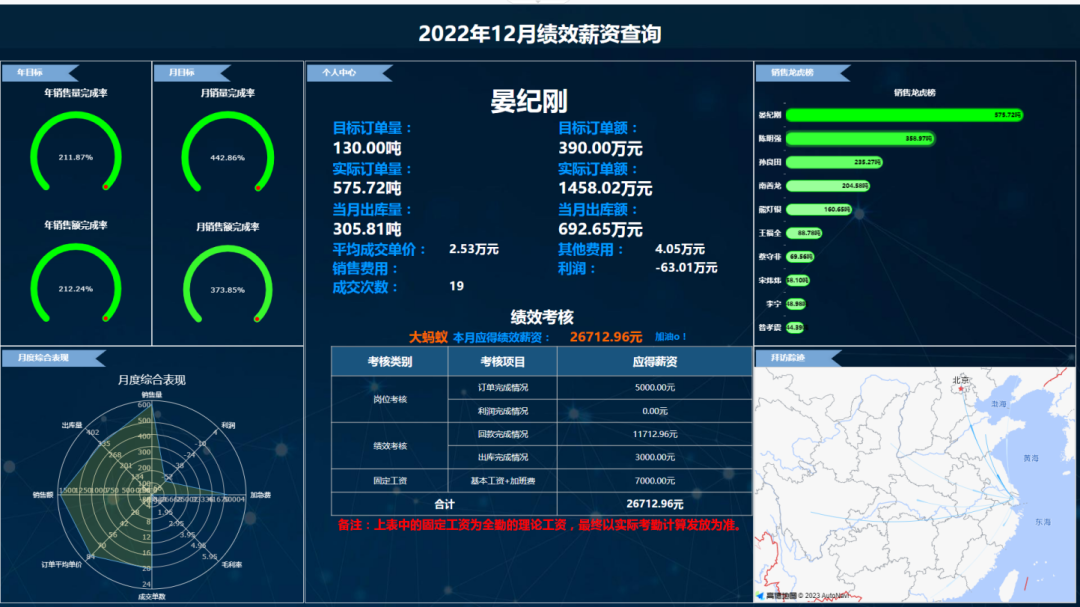 “营销智评”“决策智治”这两个子场景,在人才战略地图和人才肖像地图模块中:可一屏掌控“年月销售目标”“综合表现”“个人足迹中心”,通过应用自动抓取营销人员的销量、出库量、利润等数据,并依托人才绘制地图智能考评,在线按天自动生成绩效薪资!上海总部员工和松阳工厂员工利用数字化在线分分秒秒抓取对目标流分解、执行足迹流和突破中的价值流协同作战!