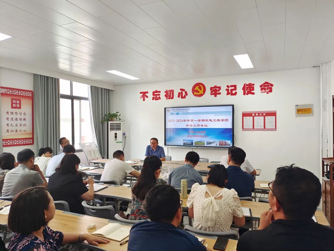启航新学期,开启新征程。为全面部署推动新学期各项工作规范有序进行,9月1日下午,机电工程学院在A212教室召开2023年秋季学期教学工作会议,学院党总支书记张亮、院长黄双成、副院长李凤银、副书记耿丽敏及全体教师参加了本次会议。