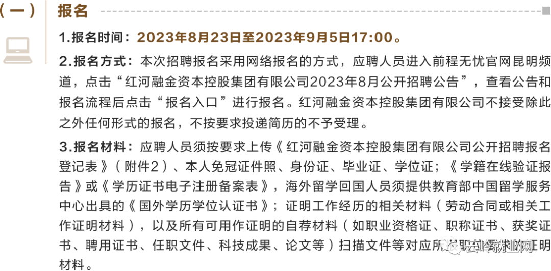 监督电话:0873-3737609附件1:红河融金资本控股集团有限公司2023年8月公开招聘计划表附件2:红河融金资本控股集团有限公司公开招聘报名登记表http://companyads.51job.com/companyads/2023/hh/finance/index.html