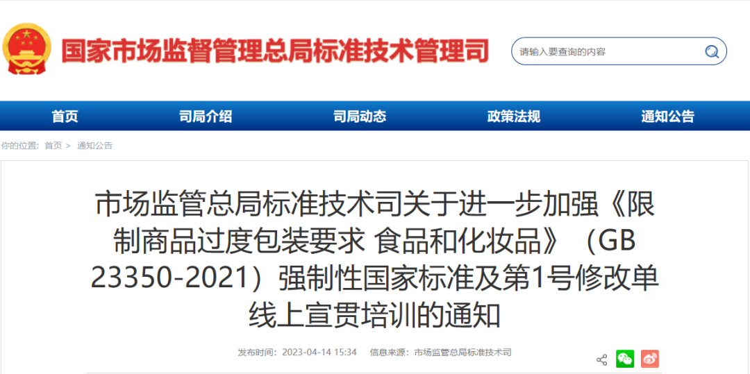 附:总局发布关于《限制商品过度包装要求 食品和化妆品》标准及修改单的宣贯视频课件