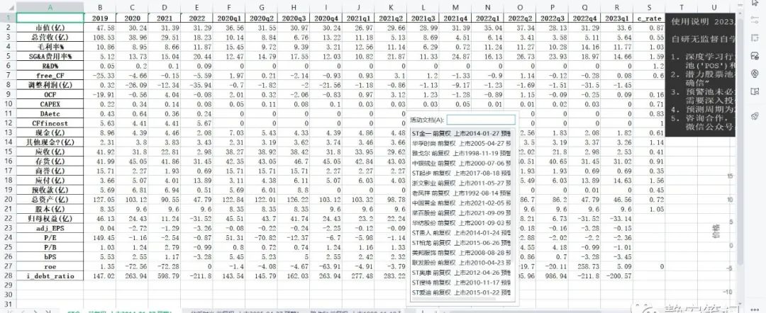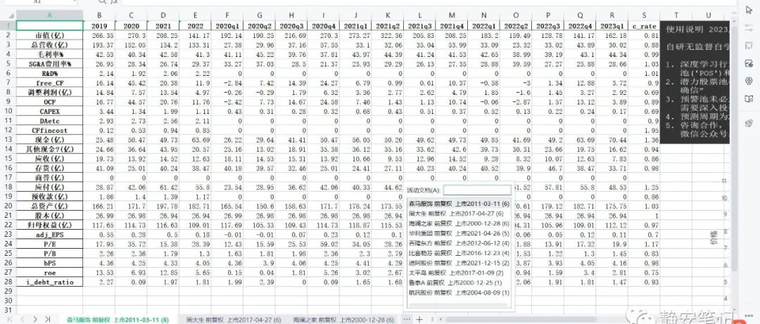 A股历史基本面深度学习AI按行业给出两个判别股票池,一个是正向潜力池,最新纺织服装行业潜力池如下(注意缺省输出为上市公司关键财务信息电子表格,股票名字在底部,"(6)"表示缺省算法6次入选潜力池):