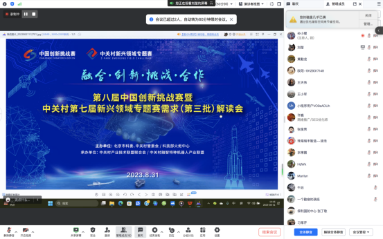 8月31日下午,第八届中国创新挑战赛暨中关村第七届新兴领域专题赛需求(第三批)解读会在京成功举办。本次活动由北京市科委、中关村管委会,科技部火炬中心主办,中关村产业技术联盟联合会、中关村融智特种机器人产业联盟联合承办。北京晶品特装科技股份有限公司、跨维(深圳)智能数字科技有限公司、新域信安(北京)科技发展有限公司等50余人通过线上线下相结合的方式参会。