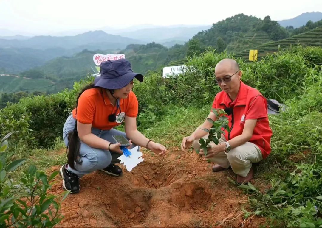 黎秩群在苍梧县沁怡六堡茶专业合作社长群山茶园基地的《农村新技术》直播间现场,详细介绍六堡茶生态茶园建设的情况和栽培管理相关技术。从选址、建园、选种到水肥管理、茶树修剪、病虫害防治、茶叶采摘等茶树全套种植技术进行了理论和实操的逐一生动呈现。据了解,当天这场直播达到了3万多的点击量、位居四场直播的第二位。