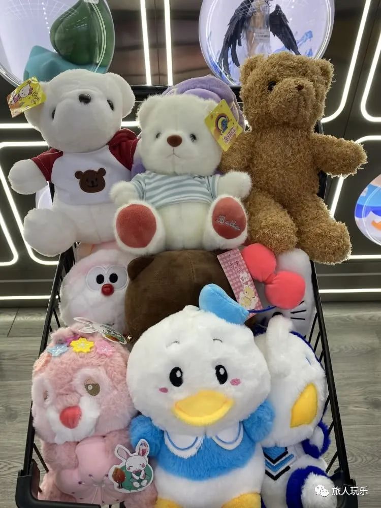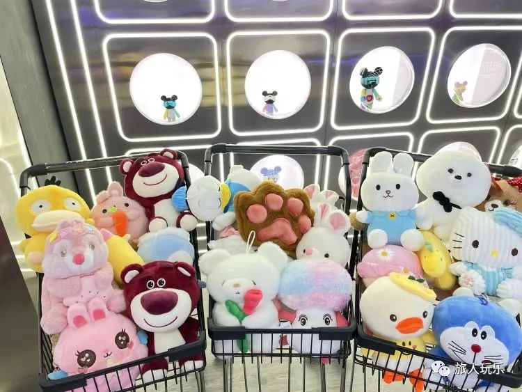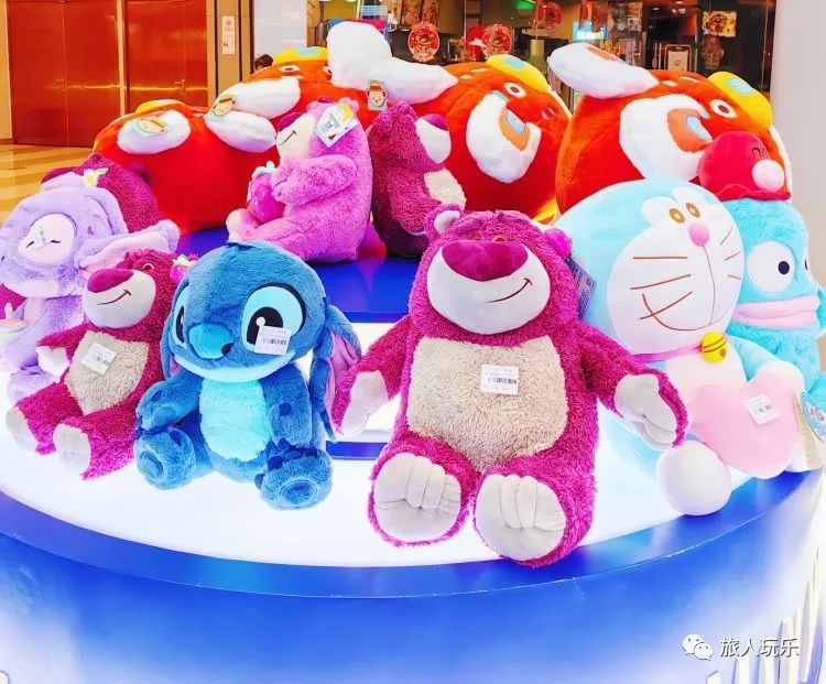 店内的娃娃种类也非常丰富,从史迪仔、草莓熊、哆啦A梦等知名玩偶,还有其他卡通形象应有尽有~
