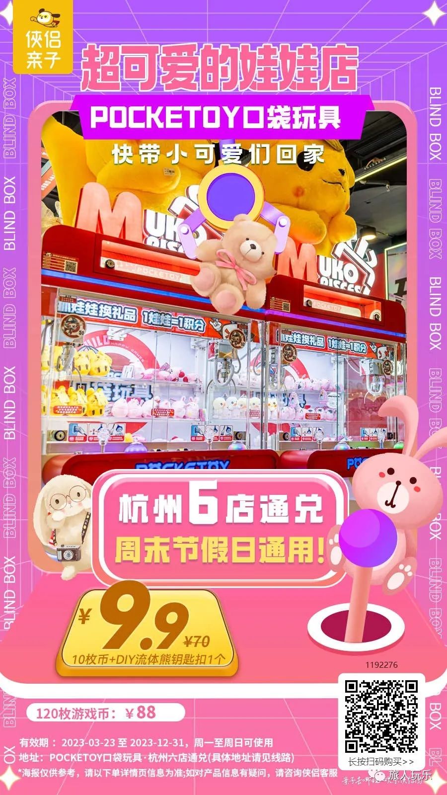 ¥9.9起【POCKETOY口袋玩具】游戏币套餐可选,杭州六店通兑,周末节假日通用!超可爱的娃娃店,秒变娃娃收割机,快带小可爱们回家~