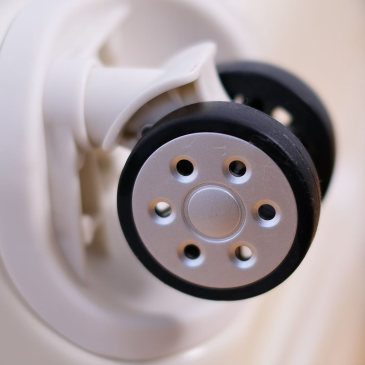 万向轮采用的是加固滚轮轴承,装满行李后能减少压力,拉拖更显顺滑、轻便。
