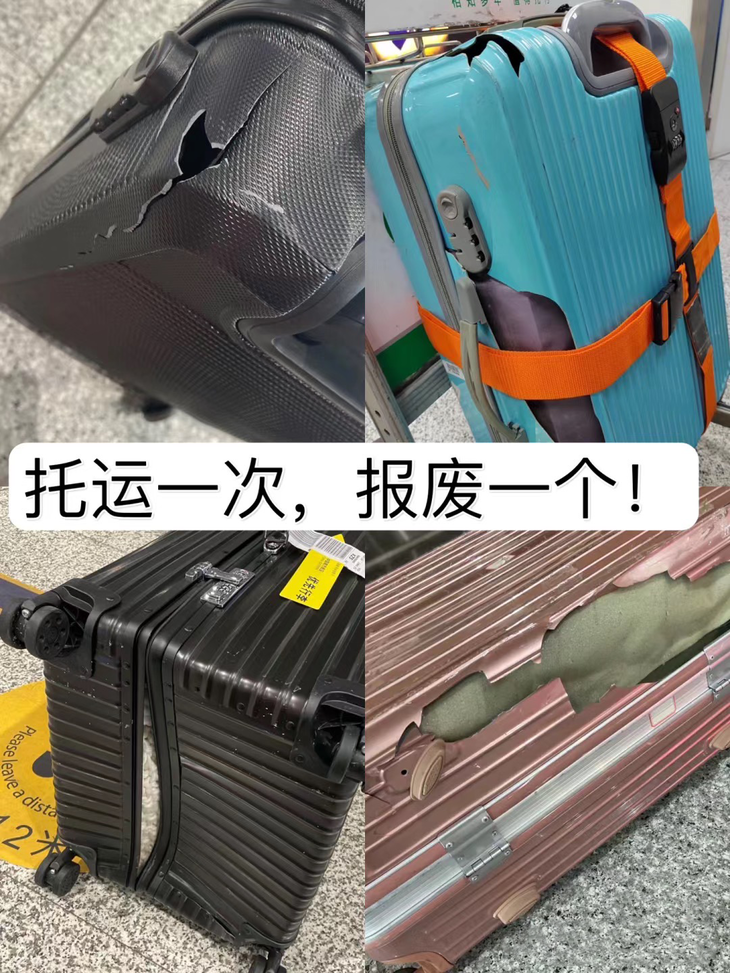 行李箱最怕暴力托运,托运过程中磕磕碰碰、跌跌撞撞,箱子很可能就破了或变形了,甚至轮子都掉了,出行的好心情瞬间也被破坏了。