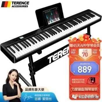 特伦斯 Terence 折叠88键电子琴采用88键折叠设计,无论是儿童还是成年人,都能轻松携带和演奏。高品质的音色模拟技术和智能教学功能,使得学习和演奏更加便捷。琴键灵敏度可调节,适应不同手指的力度,带给用户灵活的演奏体验。支持USB和MIDI接口,让你轻松与电脑、手机等设备连接,实现更多扩展功能。