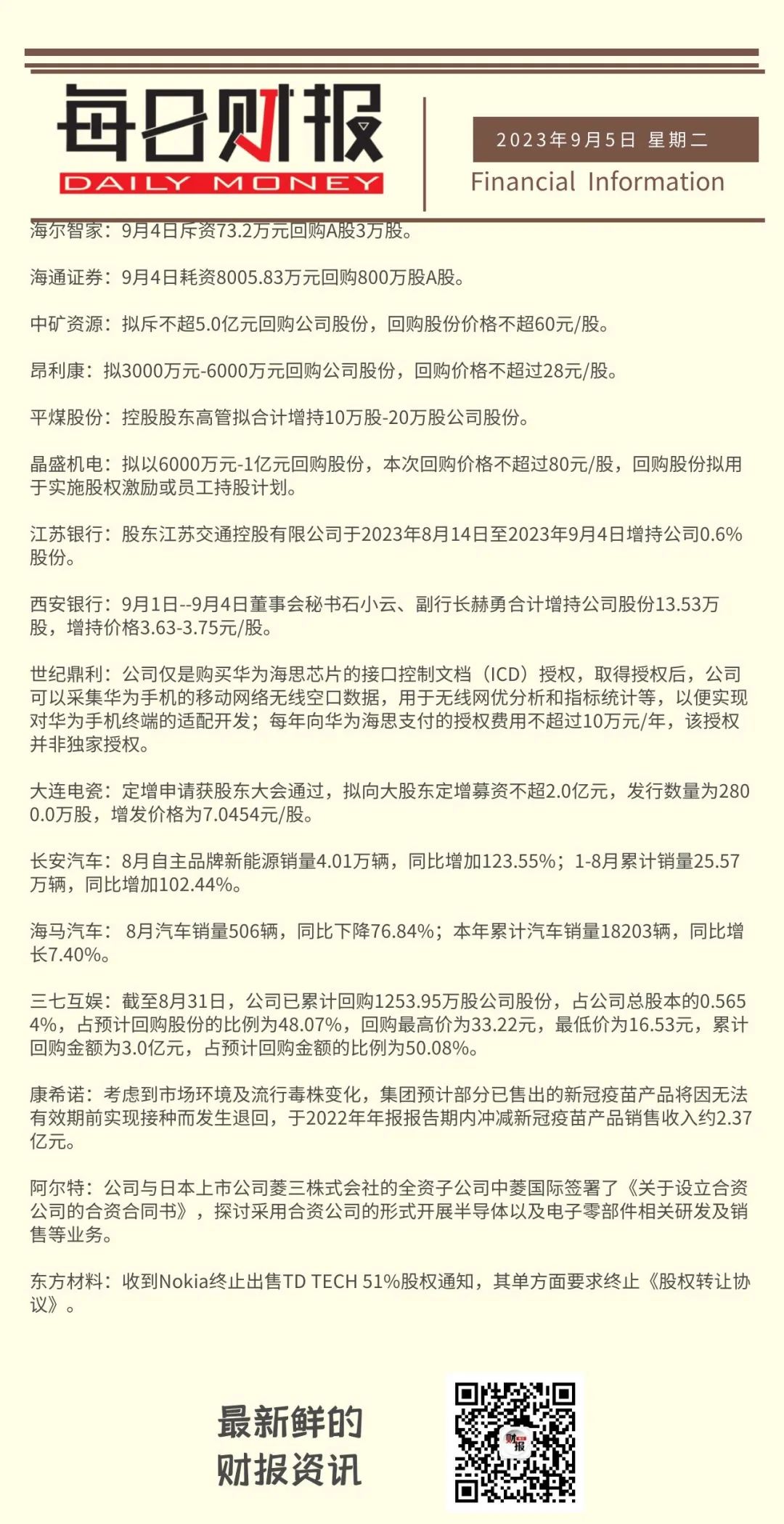 每日财报|晶盛机电拟6000万-1亿回购 长安汽车前8月累计销量25.57万辆