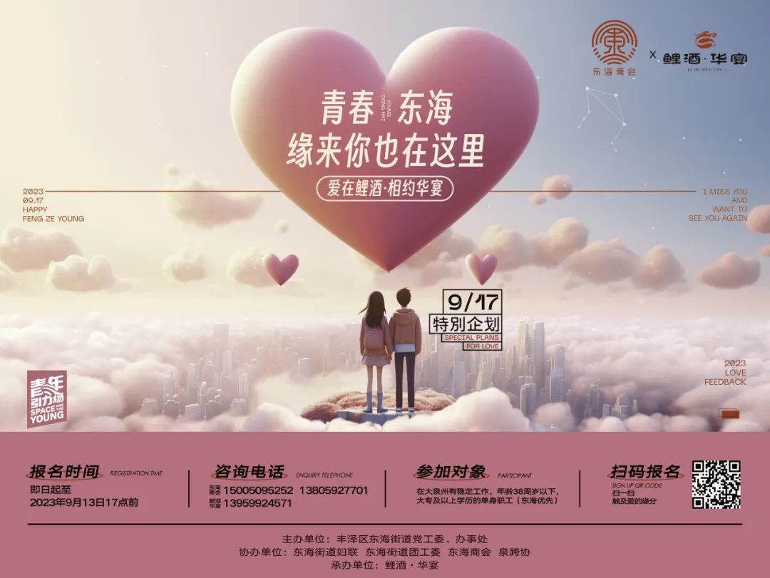 为丰富青年人才的工作和生活,促进交流互动,帮助青年人才扎根东海、安居东海、立业东海,同时,也为响应上级部门开展以“强国复兴有我”,引导广大青年树立正确恋爱观婚姻观,传承弘扬优良家风的工作指示,东海商会拟联合鲤酒华宴等单位在中秋期间举办第二届青年人才联谊会。