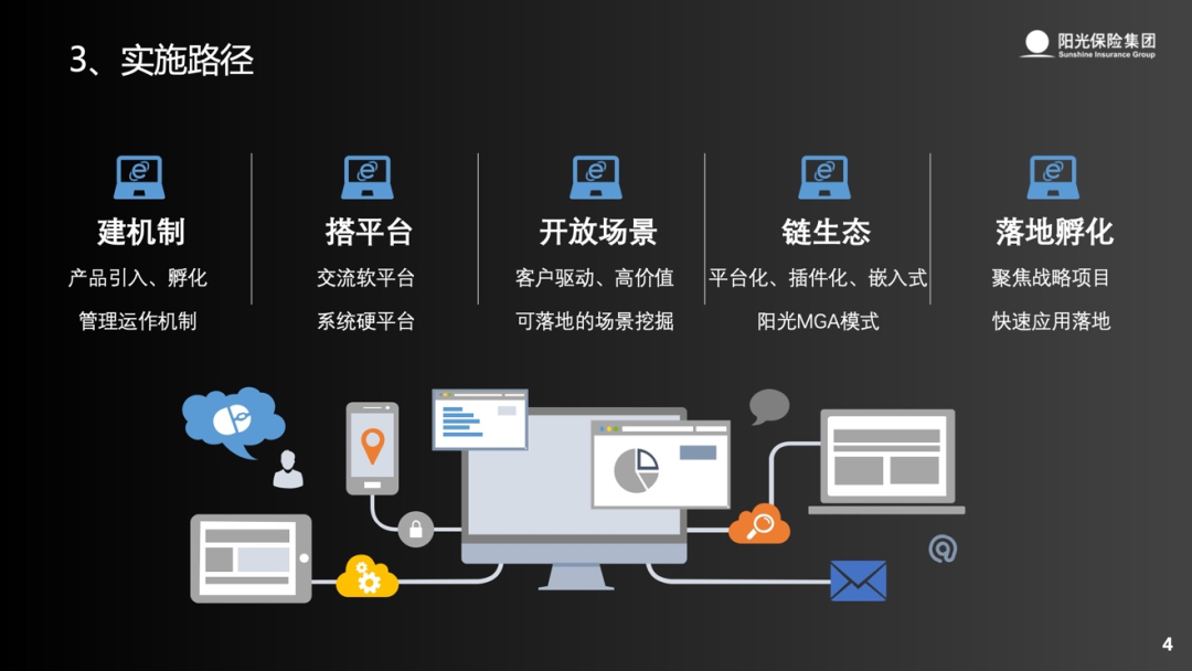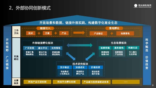 阳光保险集团外部科技生态合作部负责人陈述表示:阳光科技(保险)进入了以“让阳光成为智能企业 以科技让人们感受阳光”为目标的3.0时代,并详细介绍了阳光保险在人工智能和大数据等技术背景下,在场景开放、数据开放及项目孵化的合作政策和工作计划。