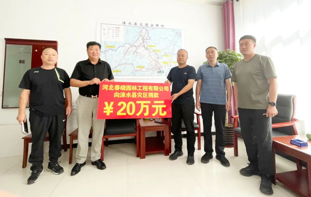 8月21日,河北春晓园林工程有限公司向涞水县应急管理局救灾专户捐款20万元及生活物资,帮助受灾居民渡过难关,为当地赈灾救助工作贡献力量,共同守护我们的家园。一、2023年8月3日,河北星汉生态环境建设有限公司组织带动星光集团、中星路桥工程有限公司,往返共计230公里专程向涿州义和庄镇避险的受灾地区码头镇500多人捐送抗洪救灾生活物资,此次行程由星汉生态李光总经理带队一行20名志愿者,7辆物资车组成,将矿泉水、小米油、桶装面、奶、榨菜、火腿肠、卤蛋等价值2万元爱心物资送至涿州市义和庄村委会并请转交码头镇在义和庄村异地安置的500多灾民,与受灾群众共同抵抗灾情。