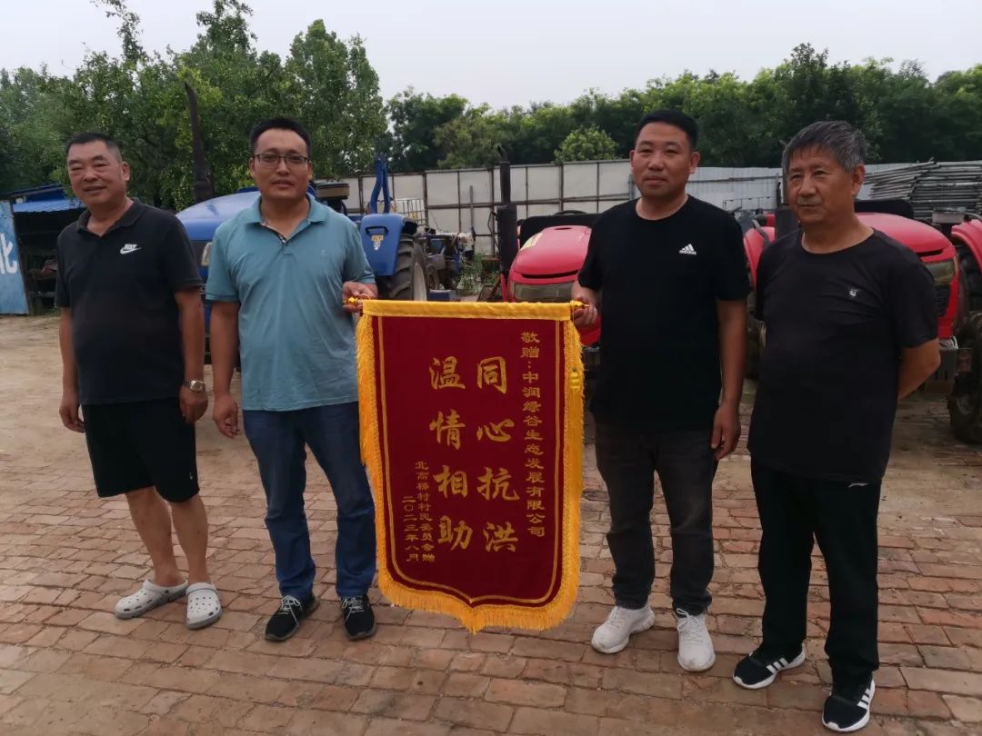 近日,生态环境公司(中润绿谷分公司)收到来自保定市徐水区留村镇政府和北高桥村的两面锦旗在这次徐水漕河抢险救灾中,生态环境公司在自家苗木基地砍树泄洪,苗木泄洪面积600多亩,涉及树木近3万棵,砍伐68棵,与当地人民政府共同抗击洪灾,取得了抗洪抢险的胜利。