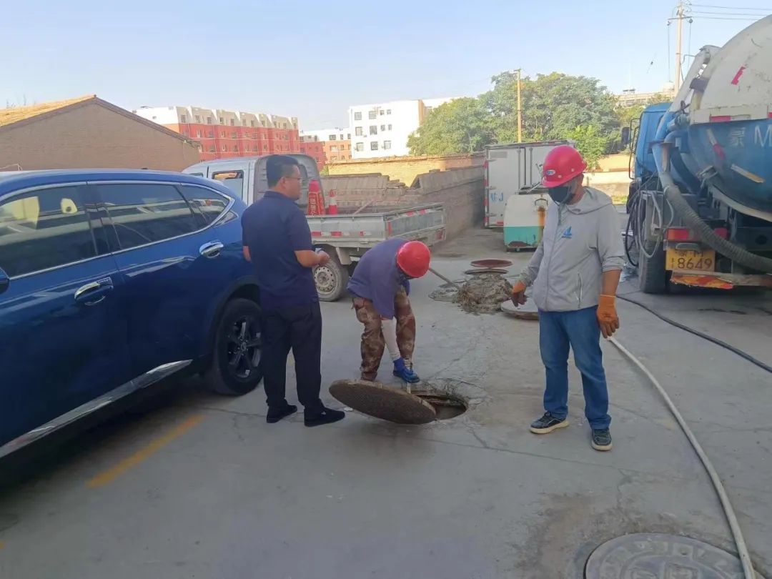 9月2日,旗住建局局长梁来柁、副局长图布太、城乡水务有限公司总经理石培宏到旭晨海岸实地调研清理化粪池、高压疏通污水管道情况。