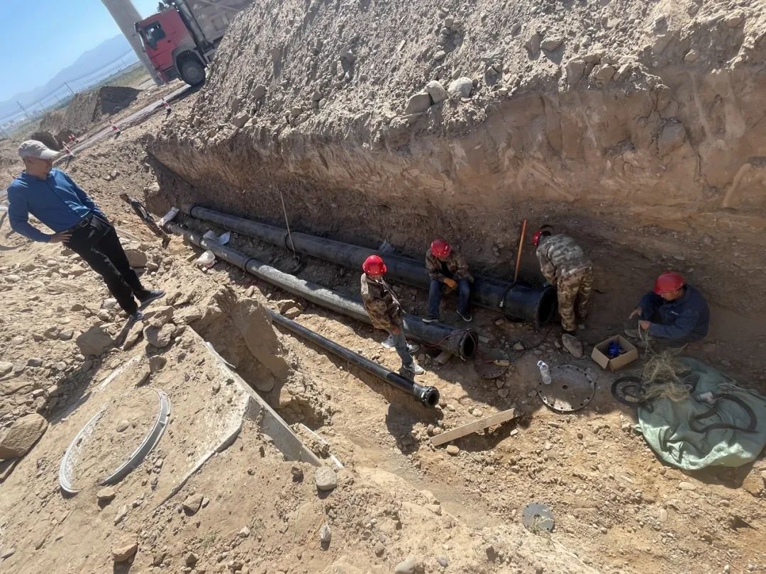 8月30日,城乡水务有限公司总工程师查看高架桥下管道安装情况。