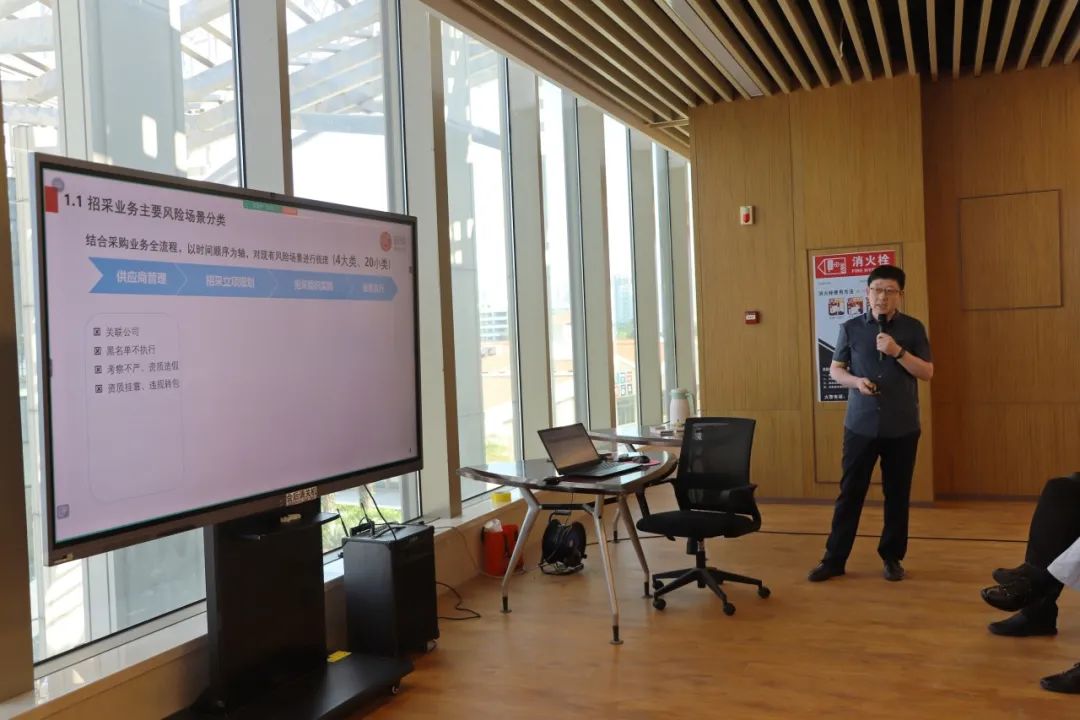 本次交流会分为两个板块。第一板块由新绎控股示险智能能力群薛红征进行“招采、成本及工程业务风险场景分享”,通过供应商管理、招采规划、招采组织实施、业务执行四大类风险场景12个真实案例,进行招采业务风险场景分享;从成本规划,招投标,合同执行,结算评估四个阶段16个真实案例,进行工程成本管理风险场景分享;最后,结合工程管理中进度、质量、成本三要素分享10个工程管理业务场景案例。第二板块是“企业内部控制探讨与案例分析”,由新绎控股示险智能能力群曾庆祥通过总则、内部环境、风险评估、控制活动、信息与沟通、内部监控六个部分进行案例分析探讨。