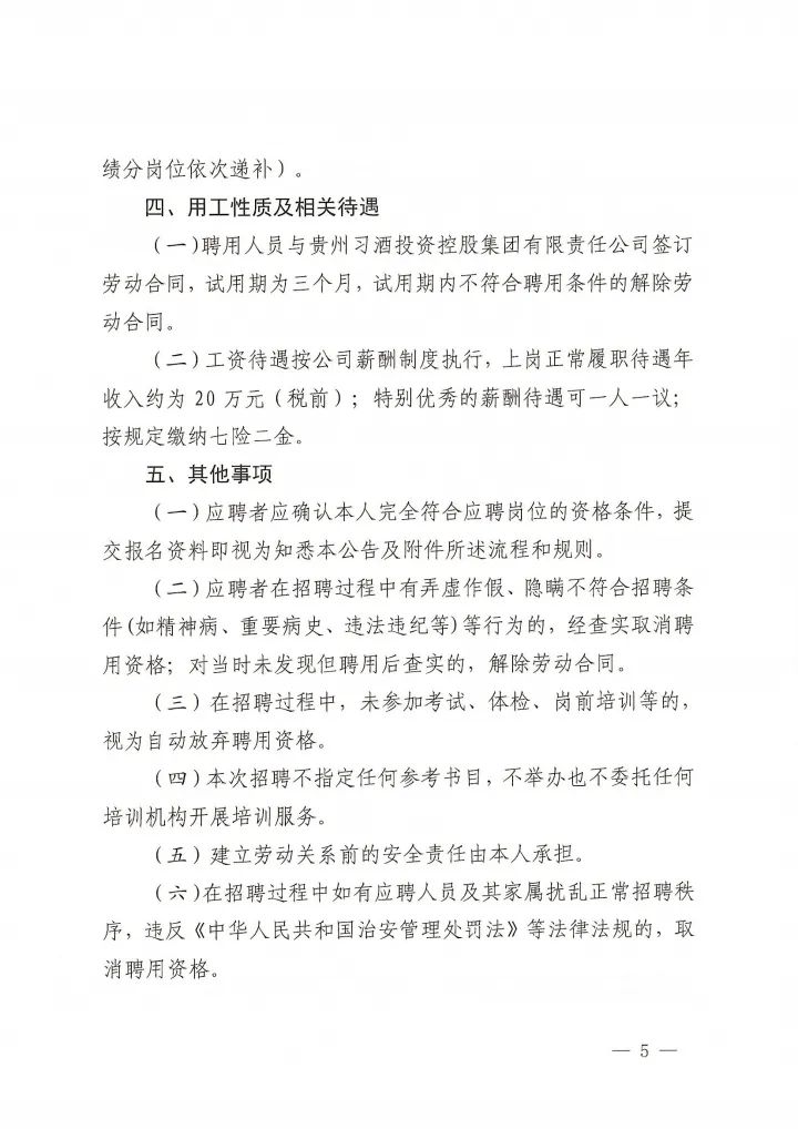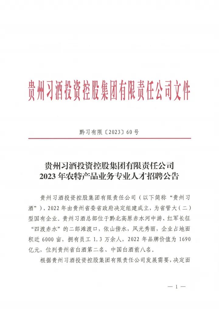 贵州习酒投资控股集团有限责任公司2023年农特产品业务专业人才招聘公告