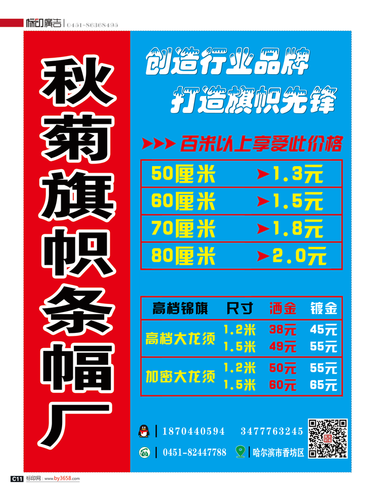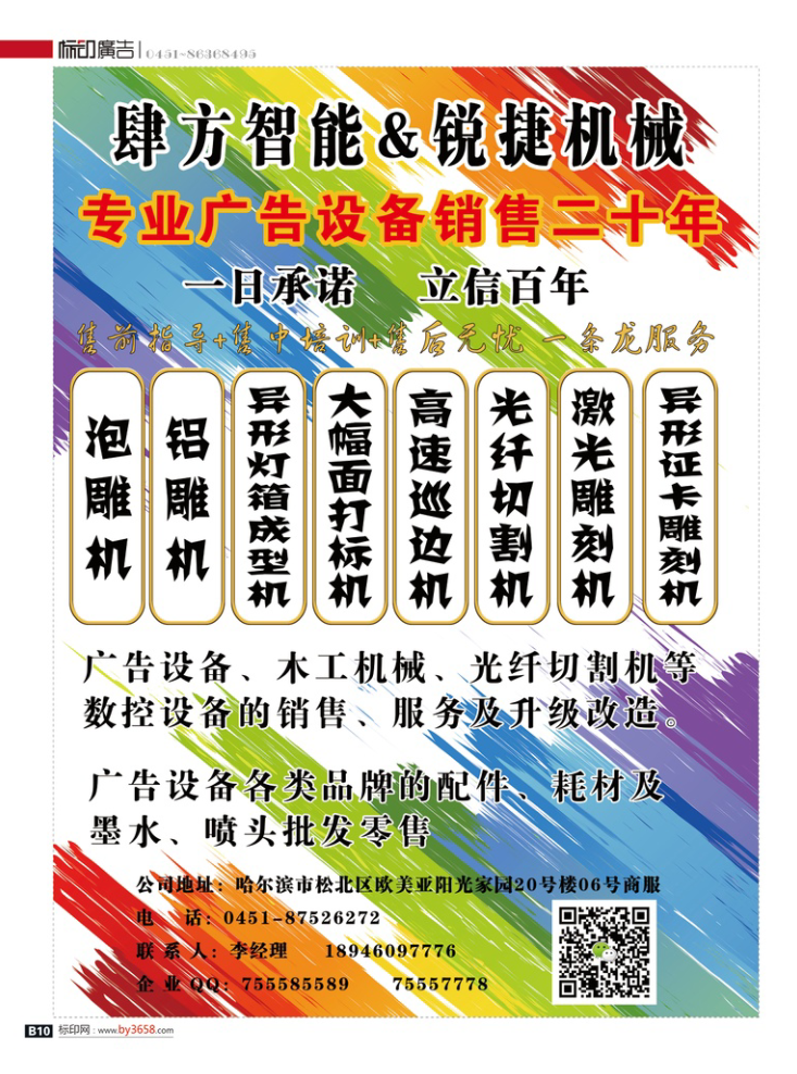 《标印广告》东北三省标识与印刷行业专业DM直投杂志,覆盖东北三省的大大小小广告制作类企业、印务企业、美术社。可以将您的产品信息迅速传达到东北三省内广告行业各级产业链,是您开拓市场的得力助手,有缘就能合作,合作就能受益。