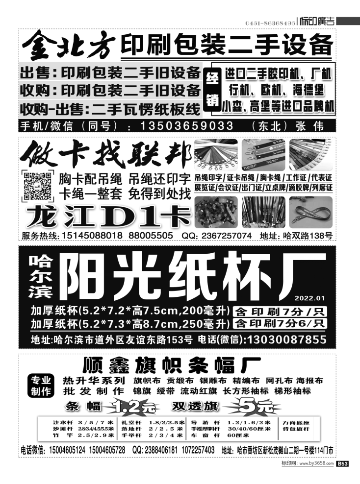 金北方印刷包装二手设备/联邦制卡/阳光纸杯厂/顺鑫旗帜条幅厂