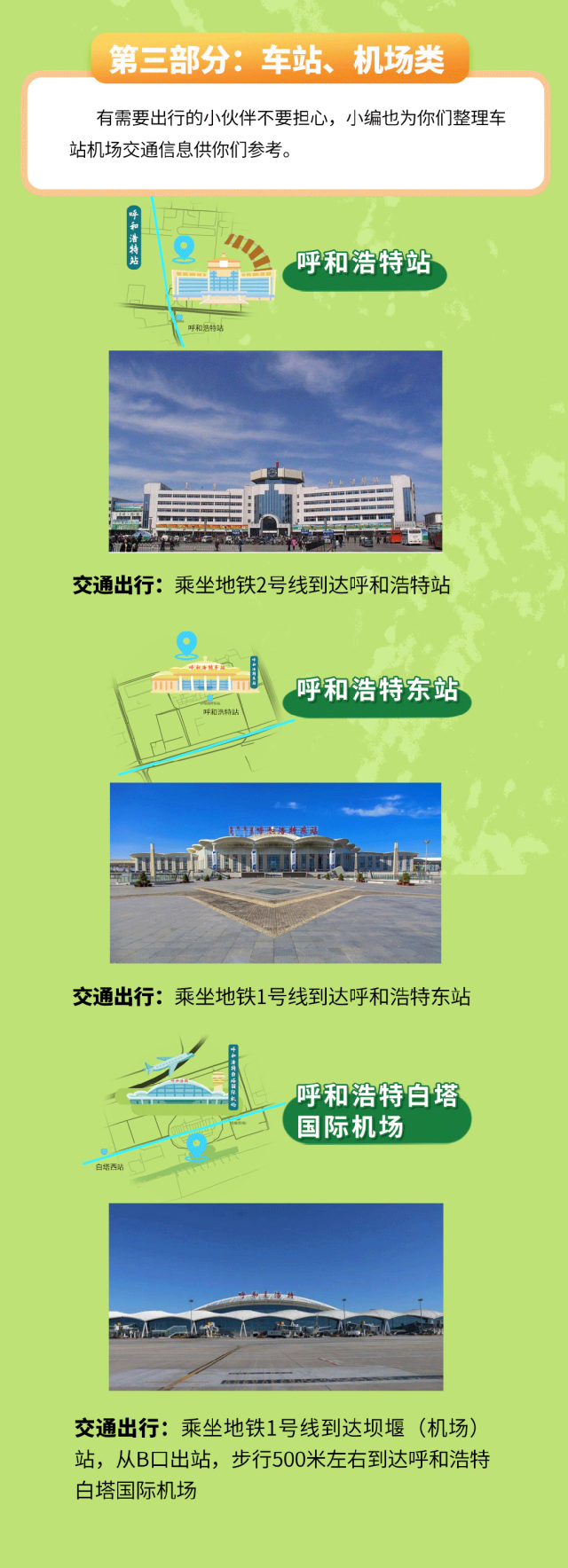 第四届中国—蒙古国博览会于9月6日--9月10日在呼和浩特市举行,会展期间呼和浩特公交增设5条专线、1条摆渡线,增加103路配车数量,并于博览会期间提供免费乘车服务。呼和浩特地铁1、2号线与各条公交专线有多处交汇点,我们特意制作接驳攻略,供大家参考。