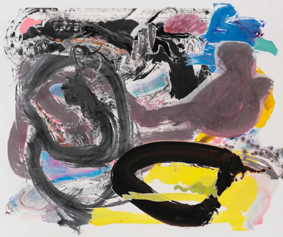 纸本水墨、彩墨,剪纸拼贴于背绢宣纸 Ink, watercolor, paper-cut and collage on Xuan paper