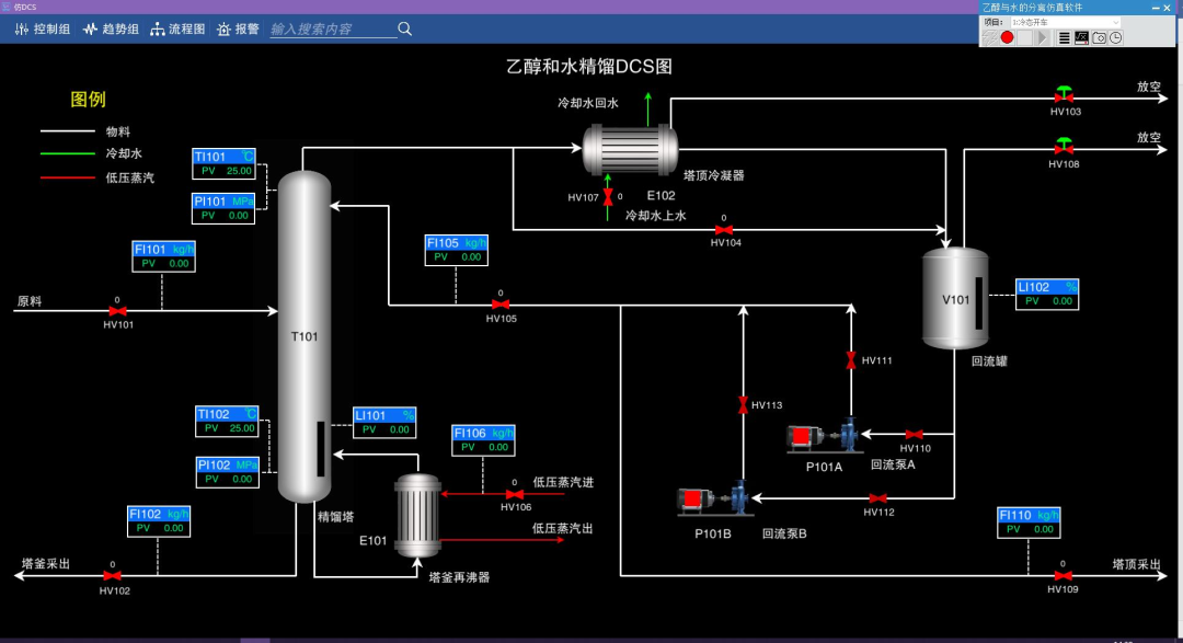 数据实时传输,与后台同步,仿照真实工厂DCS进行数据模拟,每一步操作都有准确评分和相关提示,实时显示动态数据,反应真实的化工工艺过程。
