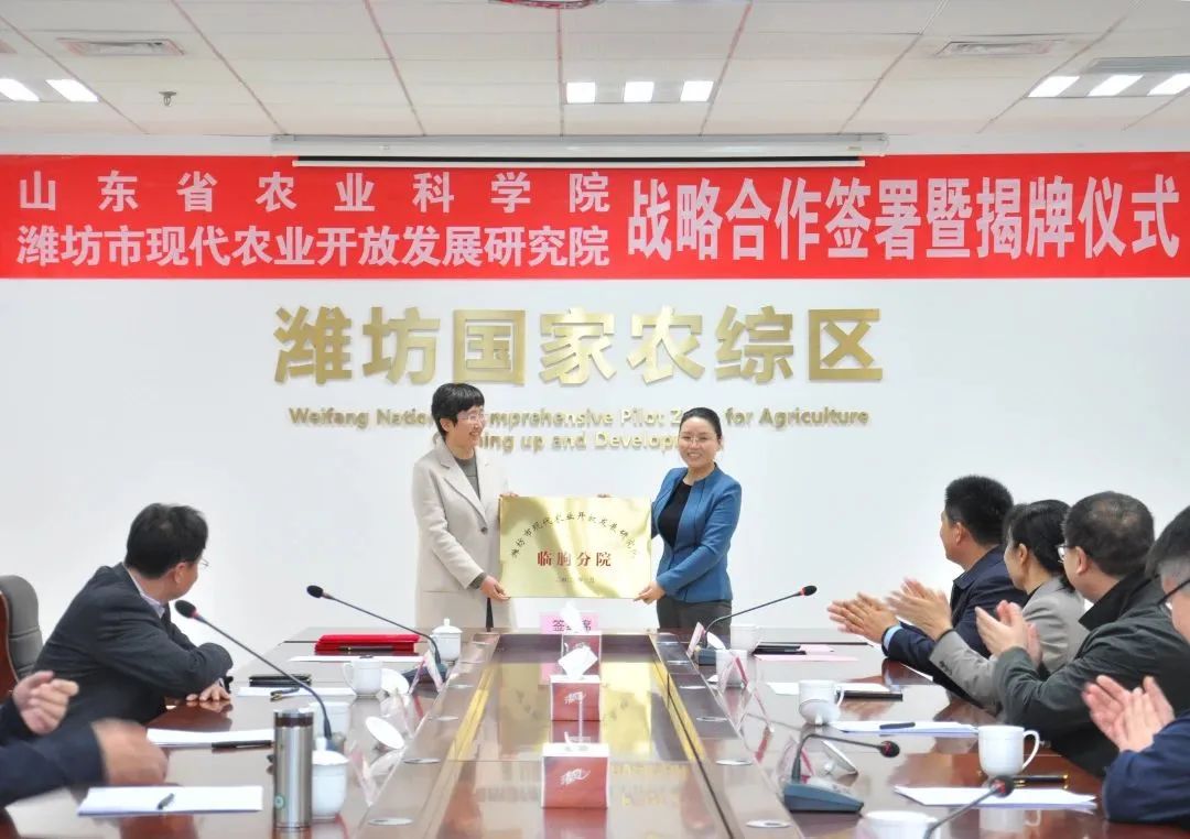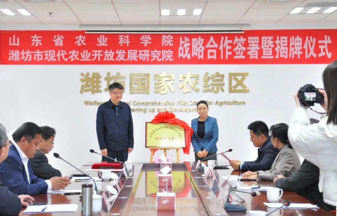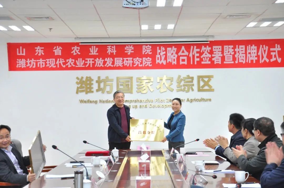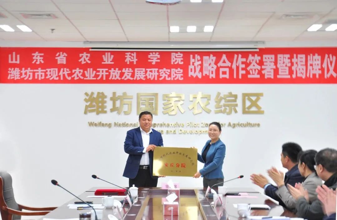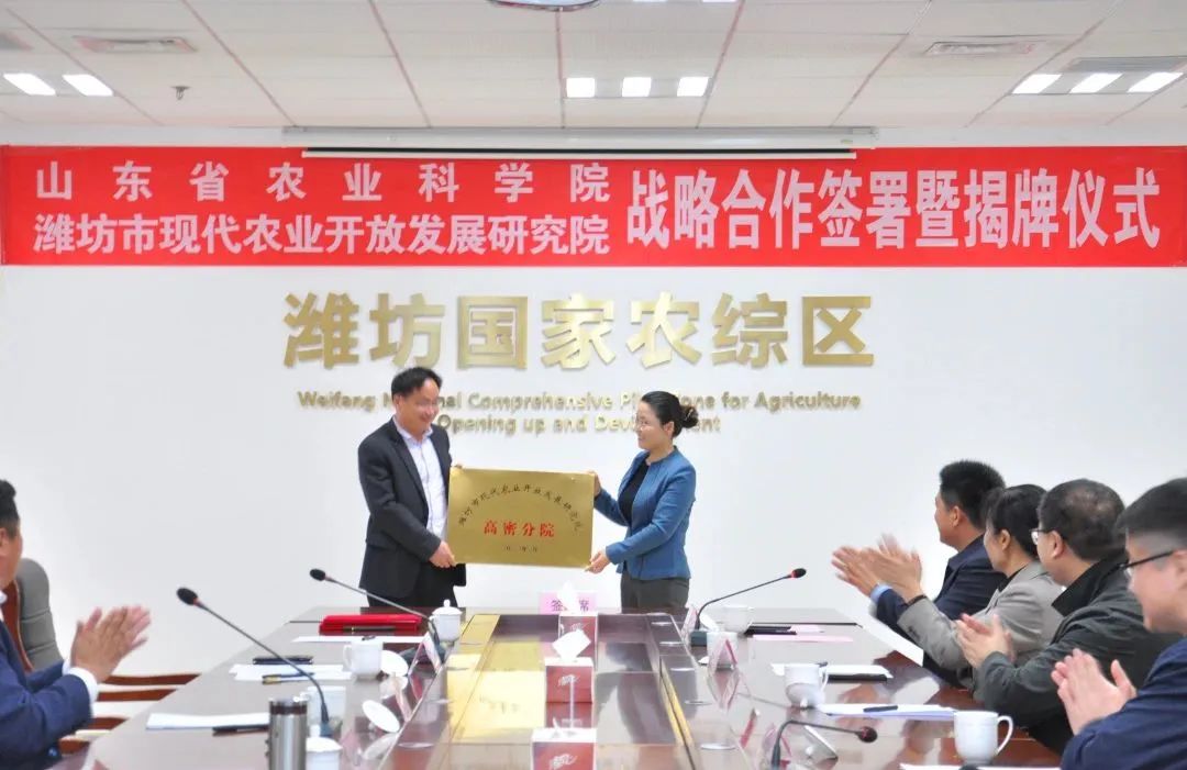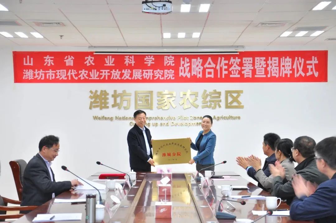 为全面落实国家乡村振兴战略,大力推动乡村振兴,不断提升现代化农业发展水平,寒亭区开元街道以潍坊市现代农业开放发展研究院为依托,聚焦农业人才培育、乡村治理和农民增收等方面,构建农业人才发展平台,为打造乡村振兴“齐鲁样板”提供强有力技术支撑。2023年3月8日,山东省农业科学院潍坊市现代农业开放发展研究院战略合作协议签署暨分院授牌仪式成功举行。