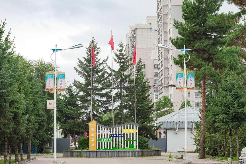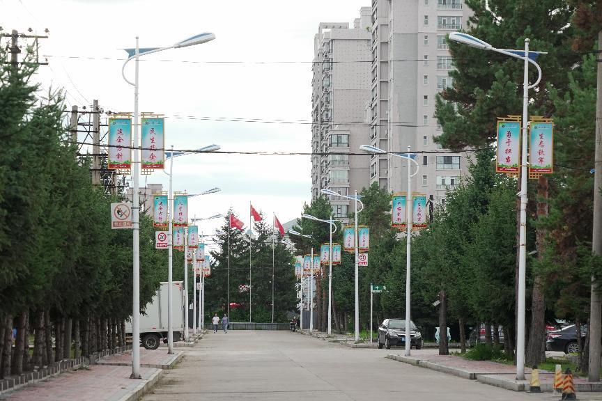 在主要街路的路灯上安装钢制灯杆边旗 宣传森工集团企业文化