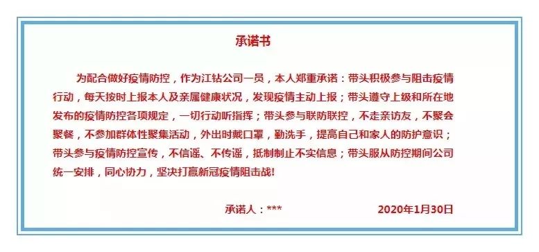 为充分发挥党组织战斗堡垒和党员先锋模范作用,江钻公司党委发出《关于坚决打赢疫情防控攻坚战倡议书》,组织全体员工签订承诺书,主动作为,主动担当,让党旗在疫情防控一线高高飘扬。加强信息排查,摸清人员动态,坚持每日零报告制度。利用电话、微信、QQ等通讯工具加强疫情防护知识宣传培训和心理疏导,增强员工自我防护能力。