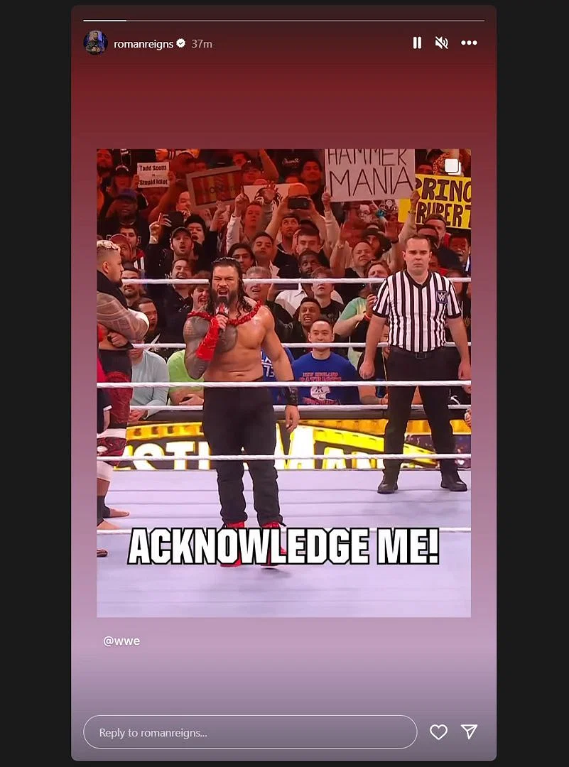 下面是罗曼雷恩斯(Roman reigns)的发文,像往常一样,罗曼雷恩斯(Roman reigns)再次被承认。